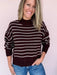The Between the Lines Sweater puts a modern spin on a timeless stripe. Designed with a cozy mock neck, relaxed drop-shoulder fit, ribbed trim, and soft knit texture, it’s the perfect blend of casual and polished. Pair it with denim for a classic everyday look or layer it under a jacket when the temps turn cooler.