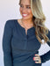The Emberline Top combines softness and comfort in a heathered charcoal shade. Featuring a half-button front and long sleeves, it’s ideal for wearing solo or layering to suit any season. Elevate your wardrobe with this versatile piece that effortlessly blends style and coziness.