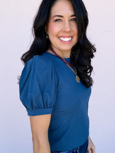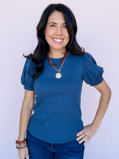 An everyday essential that still makes a statement. This short sleeve top features subtle puff sleeves, a crew neckline, and light weight cotton fa...