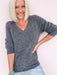 - Style Notes: V-neckline, relaxed fit, charcoal gray knit