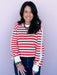 The On a Roll Striped Sweater brings an instant pop of personality to your everyday lineup. The classic stripe pattern is paired with a cozy knit feel, ribbed neckline and hem, and textured sleeve detailing that adds subtle interest. Easy to style with denim, it’s a feel-good piece that looks cute without trying too hard.