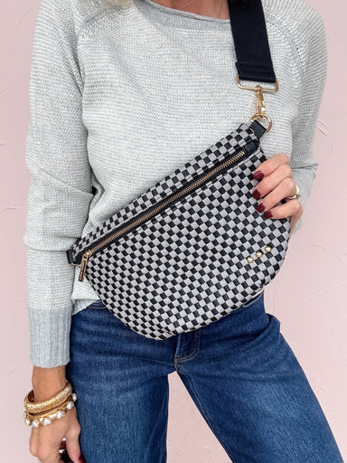Gorgeous woven vegan leather bum bag with a unique block design on the straps gives edgy, rocker vibes. Beautiful hardware with a zipper closure an...