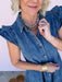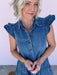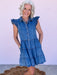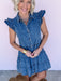 Timeless appeal in this denim casual dress, designed for those who love vintage-inspired details with modern comfort. The charming ruffle sleeves add a playful touch, while the layered ruffle bottom creates beautiful movement and dimension. Whether you're dressing up for a casual outing or keeping it relaxed, this versatile piece transitions seamlessly from day to night. A wardrobe essential that combines feminine flair with practical comfort.