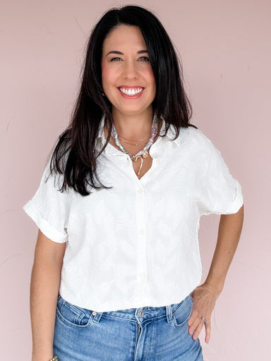 The Gentle Bloom Button Top is a fresh, feminine staple with beautiful texture and easy polish. Designed with a floral burnout finish and a classic...