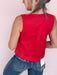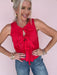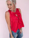 This poppy red sleeveless top is full of thoughtful details, from the soft pleating to the feminine tie-front neckline. Designed with a polished yet easy silhouette, it’s perfect for dressing up denim or pairing with the coordinating skirt for a pulled-together look. Lightweight and breathable, this top feels special while still being effortless.