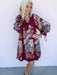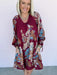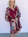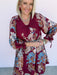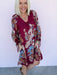 The Calista Floral Dress brings a soft romantic touch to your fall wardrobe. Designed in a deep maroon base with shades of blue and taupe florals, it features billowy sleeves with tie cuffs and a breezy A-line silhouette for effortless charm. Perfect for brunches, date nights, or weekend gatherings—this one turns heads with ease.