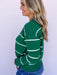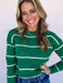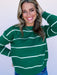 The City Beat Sweater is a fresh take on classic stripes with just the right amount of edge. Crafted from a soft fine-knit in dark green with crisp white stripes, it features a drop shoulder design and slightly cropped length for that laid-back city vibe. Pair it with high-rise denim and sneakers for a coffee run or style it up with leather pants for a night out.