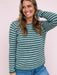 The Larkspur Stripe Sweater brings a fresh pop of charm with its soft green-and-cream palette and classic stripe design. Cozy, lightweight, and easy to wear, it features a simple crew neckline and a relaxed silhouette that works for everyday plans. Pair it with denim for errands, coffee dates, or those laid-back days when comfort wins.