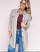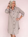 Fit: Relaxed, shirt-dress silhouette with button-down front, chest pockets, and curved hem; can be worn open as a duster or closed as a dress.