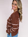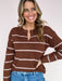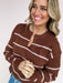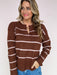 Painted Lines Sweater brings an easy, pulled-together vibe with its rich brown base and soft blush stripes. The flattering notch neckline and relaxed silhouette make it the kind of knit you’ll reach for on repeat. Perfect for everyday wear — just add denim and go.