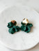 Add a splash of charm with these Radiant Energy Earrings, featuring deep green petals that playfully dangle from a wavy gold disc. Their elegant design brings a fun twist to any outfit, perfect for those who love to shine with a touch of nature-inspired beauty.